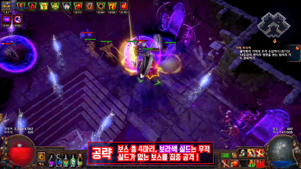 위에 사진처럼 보라색 실드를 형성하고 있는 보스는 무적이됩니다.