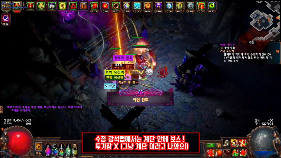 가온데 잡몹(투사체 던지는 애) 쪽에 토템이나 원거리 딜을 넣어주시면 됩니다!