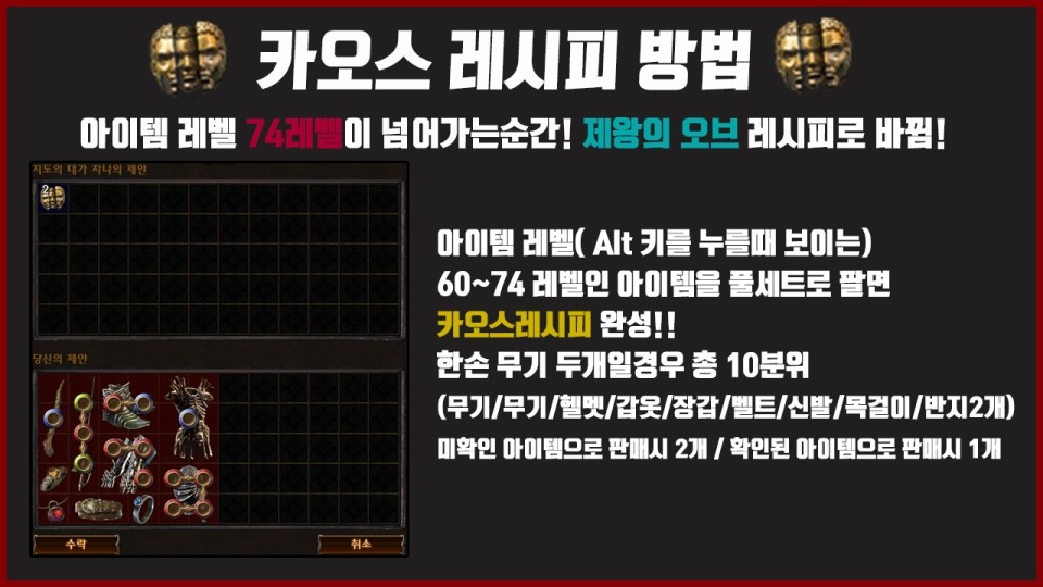 다른아이템 레벨들이 100이 되더라도 카오스레시피로 판매가됩니다.